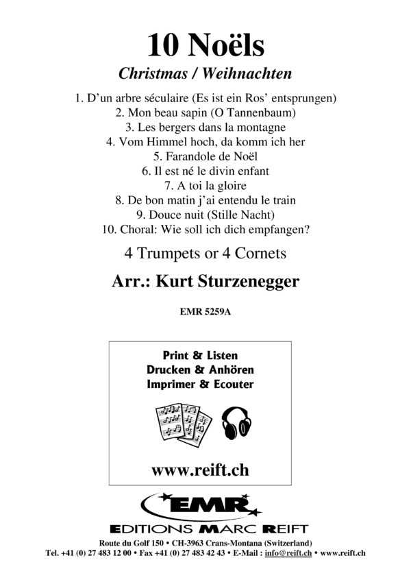 1. D'un arbre séculaire (Es ist ein Ros' entsprungen) / 2. Mon beau sapin (O Tannenbaum) / 3. Les bergers dans la montagne / 4. Vom Himmel hoch, da komm ich her / 5. Farandole de Noël / 6. Il est né le divin enfant / 7. A toi la gloire / 8. De bon matin j'ai entendu le train / 9. Douce nuit (Stille Nacht) / 10. Choral: Wie soll ich dich empfangen?