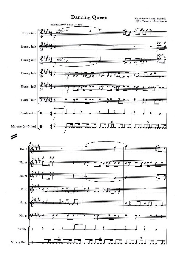 für 6 Hörner, Tambourine + Maracas (oder Guiro)