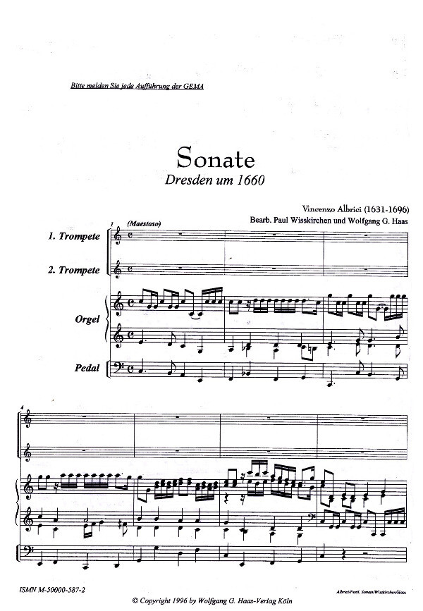 (Dresden um 1660, 1631-1696, festlich, Tr in B oder Naturtr in C, bis d''') für 2 Trompeten + Orgel
