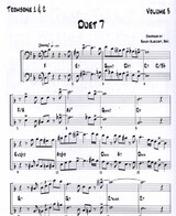 mit Harmoniebezifferung, so daß man die Duette auch mit einer Rhythmusgruppe spielen kann