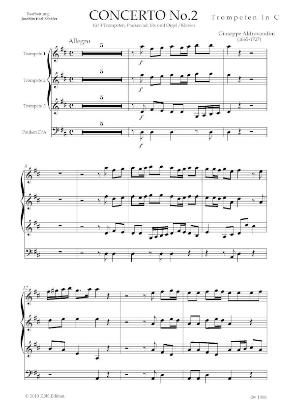 für 3 Trompeten in D und Orgel / Klavier (Pauken ad libitum)