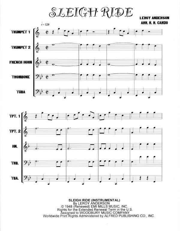 Leroy Anderson's holiday favorite for brass quintet. Parts for 2 Bb trumpets, horn, trombone, tuba and score are included.