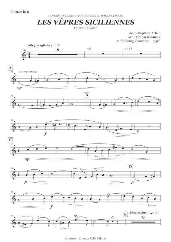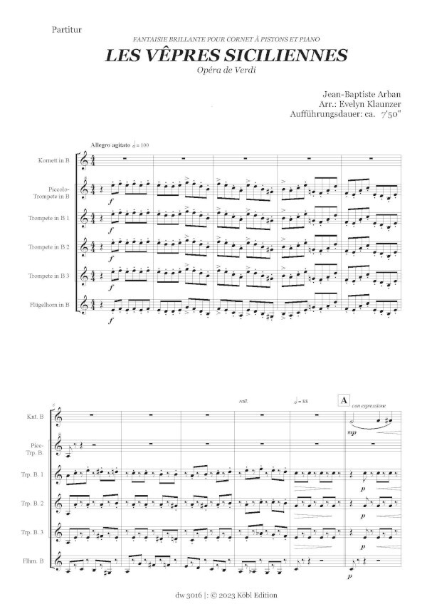 Fantaisie Brillante aus Les Vêpres Sicilliennes Opera di Giuseppe Verdi von Jean-Baptiste Arban für Solokornett/Trompete und 5 Trompeten