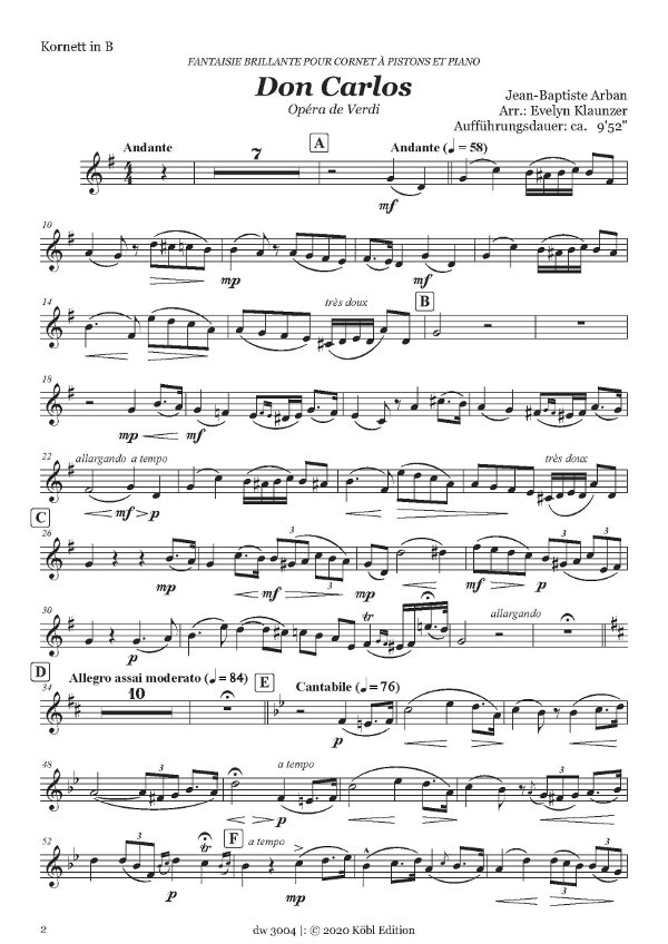 Don Carlos für 6 Trompeten, ene Fantasie von Jean-Baptiste Arban für Solokornett und 5 Trompeten