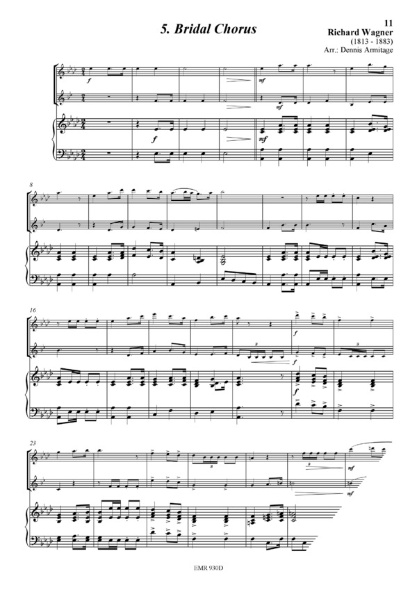 Wedding March (Mendelssohn) / Trumpet Voluntary (Clarke) / Aria (Bach) / Trumpet Tune (Purcell) / Bridal Chorus (Wagner)