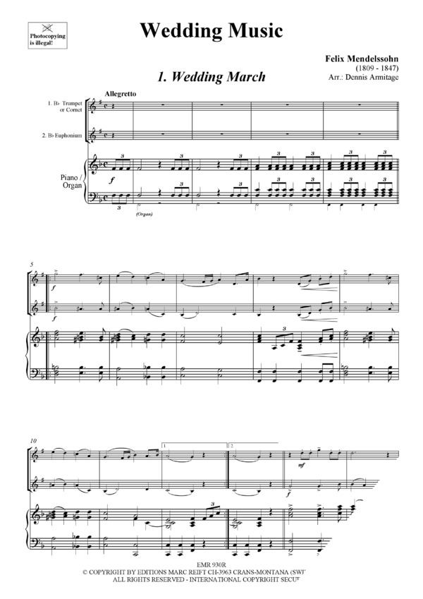 Wedding March (Mendelssohn) / Trumpet Voluntary (Clarke) / Aria (Bach) / Trumpet Tune (Purcell) / Bridal Chorus (Wagner)