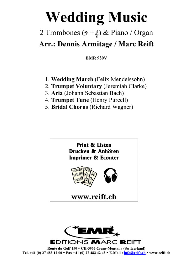 Wedding March (Mendelssohn) / Trumpet Voluntary (Clarke) / Aria (Bach) / Trumpet Tune (Purcell) / Bridal Chorus (Wagner)