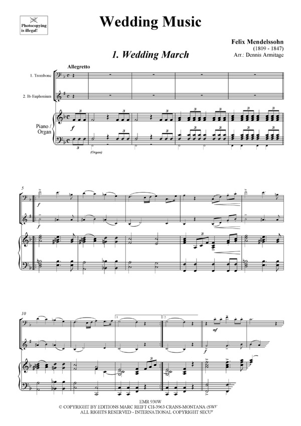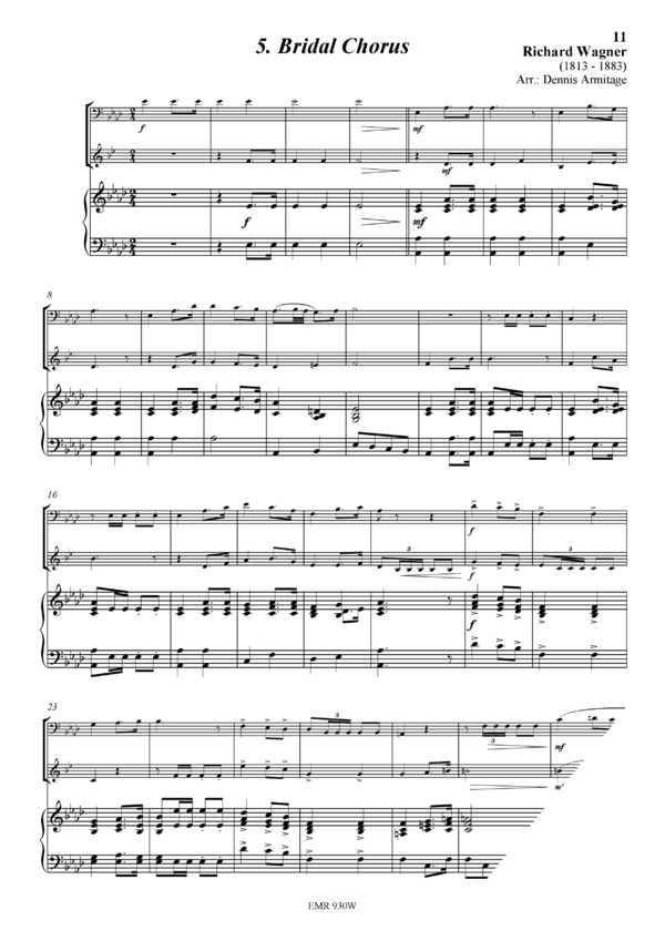 Wedding March (Mendelssohn) / Trumpet Voluntary (Clarke) / Aria (Bach) / Trumpet Tune (Purcell) / Bridal Chorus (Wagner)