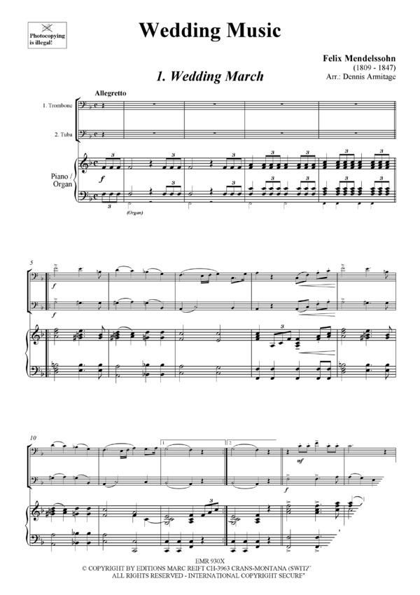 Wedding March (Mendelssohn) / Trumpet Voluntary (Clarke) / Aria (Bach) / Trumpet Tune (Purcell) / Bridal Chorus (Wagner)