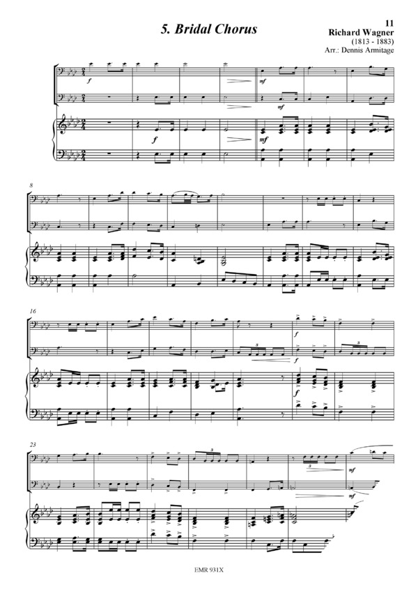 Wedding March (Mendelssohn) / Trumpet Voluntary (Clarke) / Aria (Bach) / Trumpet Tune (Purcell) / Bridal Chorus (Wagner)