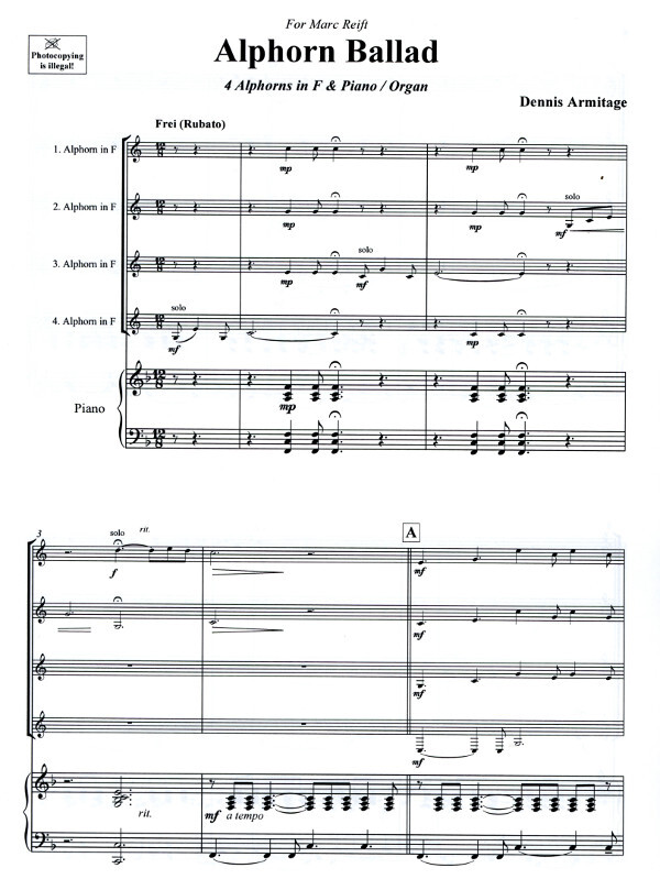 für 4 Alphörner in F + Klavier/Orgel