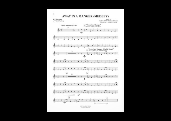 This book is part of an instrumental series arranged for Flute, Clarinet, Alto Sax, Tenor Sax, Trumpet, Horn in F, and Trombone. The arrangements are completely compatible with each other and can be played together or as solos. Each book contains a carefully edited part that is appropriate for the level 1 player, as well as a fully orchestrated accompaniment CD. The CD includes a DEMO track of each song, which features a live instrumental performance, followed by a PLAY-ALONG track. Titles: Angels We Have Heard on High * Away in a Manger (Medley) * Come, Thou Long-Expected Jesus * Go, Tell It on the Mountain * We Three Kings * Hark! The Herald Angels Sing * It Came Upon a Midnight Clear * Joy to the World * O Come All Ye Faithful * O Come, O Come, Emmanuel * O Little Town of Bethlehem * Silent Night * The First Noel * What Child Is This? "As most musicians can attest, sometimes sheet music can oversimplify a familiar song, rendering it hard on the ears. However, Alfred Music has done a tremendous job arranging these pieces."