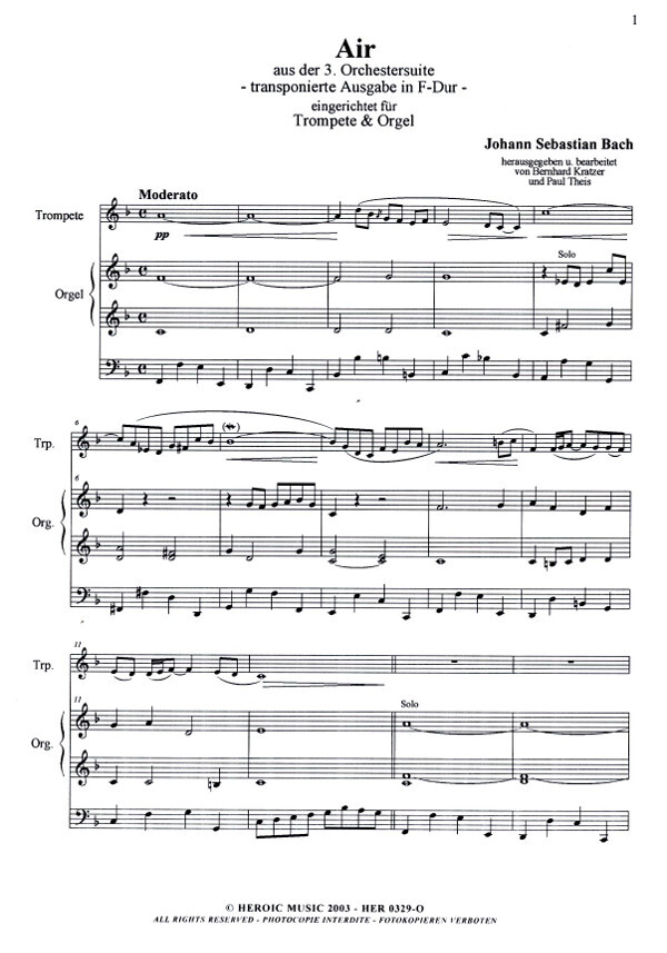 Air aus der 3. Orchestersuite - transponierte Fassung in F-Dur