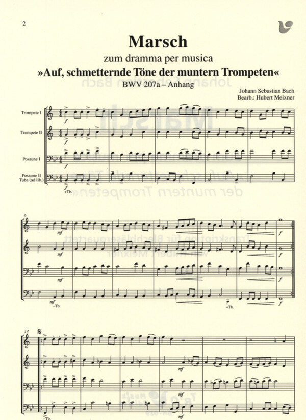 Marsch "Auf, schmetternde Töne der muntern Trompeten" BWV 207 a