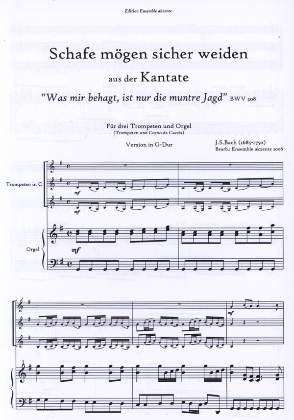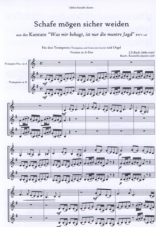 (aus der Kan tate "Was mir behagt, ist nur die muntre Jagd" BWV 208, Version in G- & A-Du , Tr in B/C/D/Picc-Tr in A)