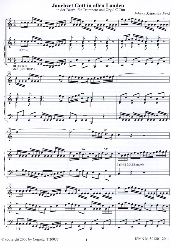Jauchzet Gott in allen Landen - Ausgabe in C-Dur (Originaltonart)