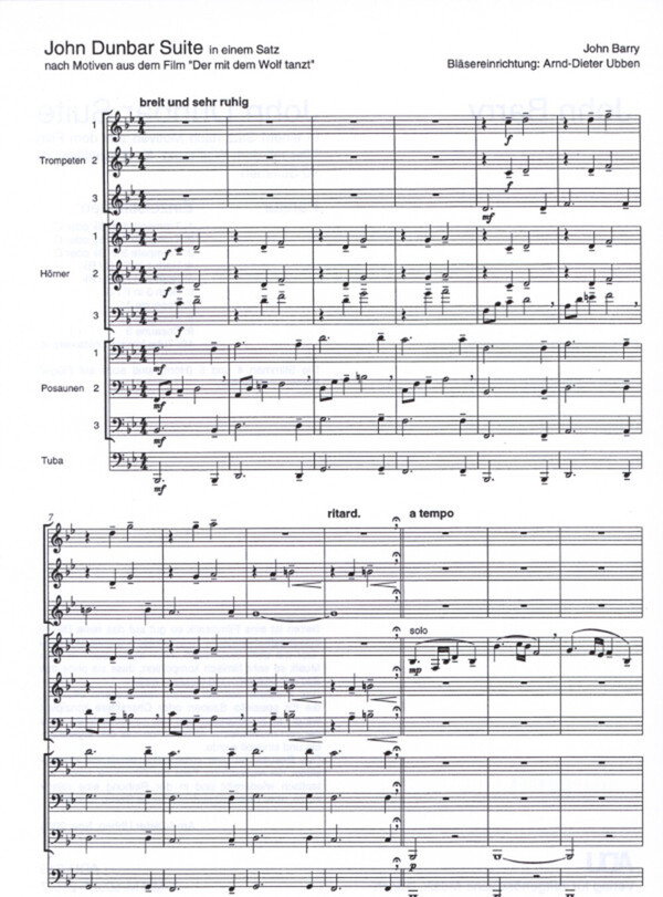 in einem Satz nach Motiven aus dem Film "Der mit dem Wolf tanzt" für 3 Trompeten in B/C 2 Hörner in F/C/B (Flügelhorn) Horn in F/C 3 Posaunen + Tuba