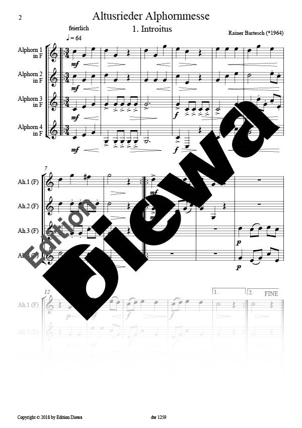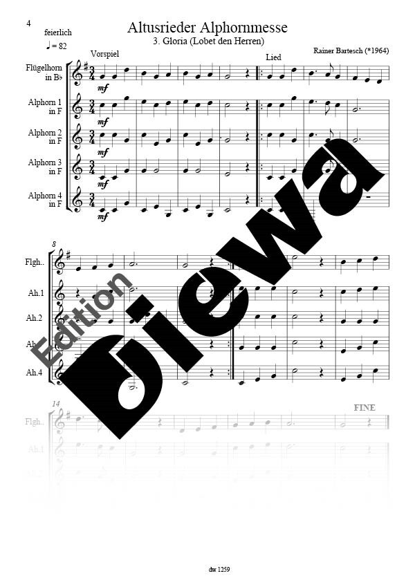 (geb. 1964) romantischer Konzertwalzer für 4 Alphörner in F und 1 Flügelhorn in B / Horn in F (nur in manchen Stücken) Soundbeispiel