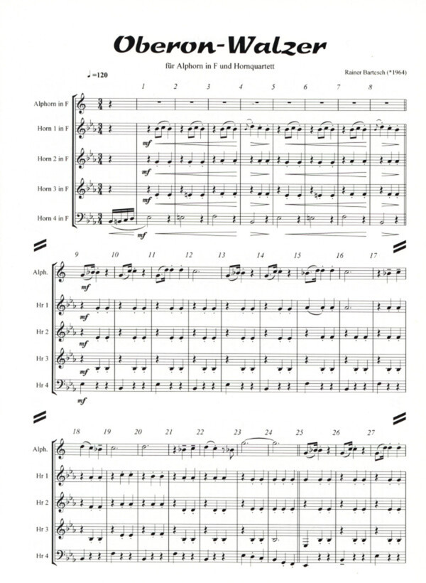 für Alphorn in F + 4 Hörner
