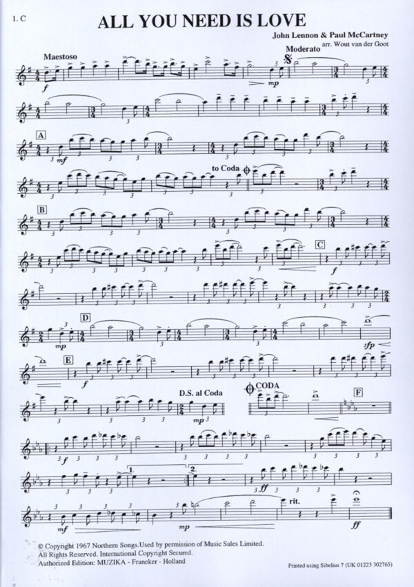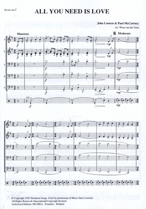 4. Stimme in C im Baßschlüssel, B im Violin-/Baßschlüssel 5. Stimme in C im Baßschlüssel, B/Es im Violin-/Baßschlüssel + Schlagzeug ad lib.