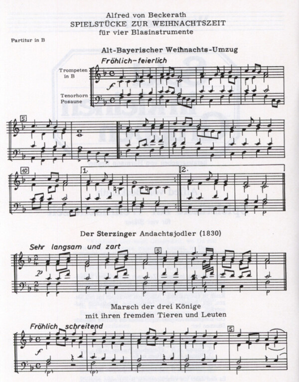 für 2 Trompeten, Horn (Tenorhorn) + Posaune (Bariton)