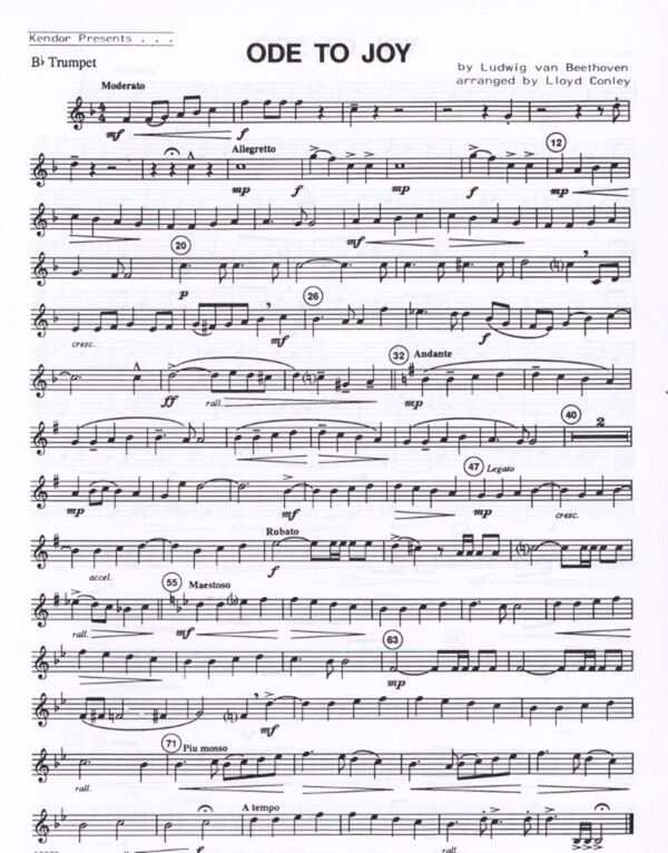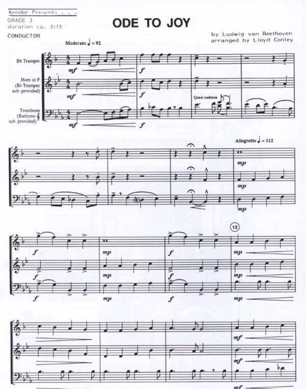 (Thema aus der 9. Sinfonie, 3:30 Min.) für Trompete, Horn (Trompete) + Posaune (Bariton im Violinschlüssel)
