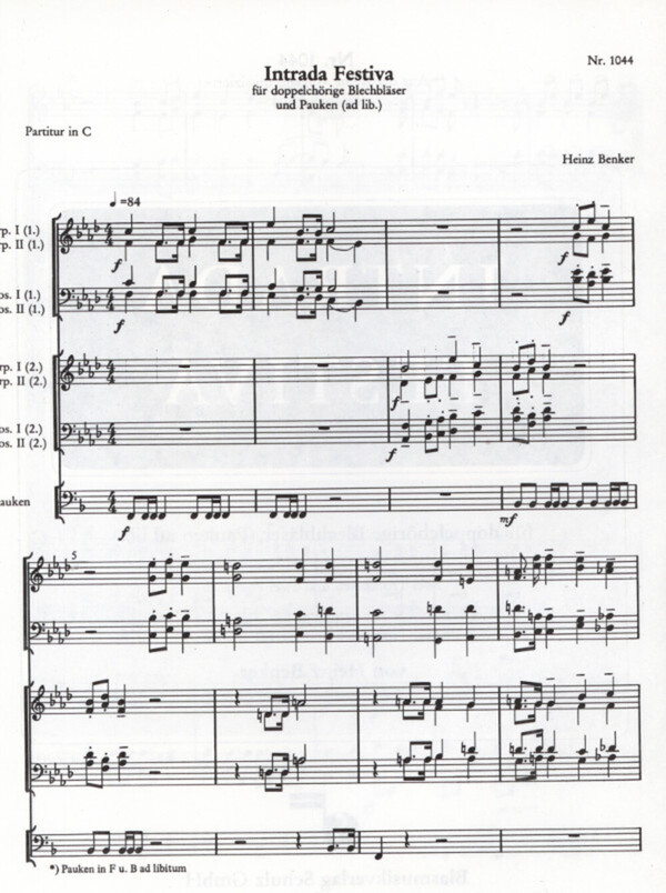 für 4 Trompeten, 4 Posaunen + Pauken ad lib.