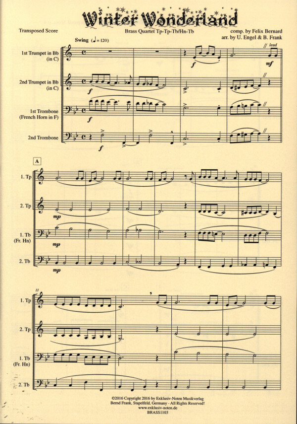 für Blechbläserquartett (2 Tromp., Pos./Horn, Pos.)
