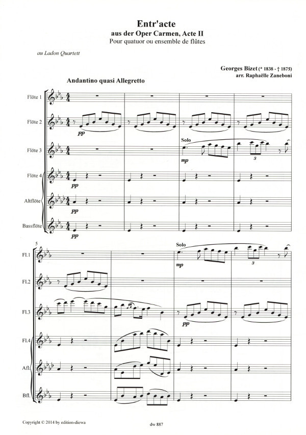 für 4 Flöten (4. Flöte alternativ mit Alt- oder Bassflöte)