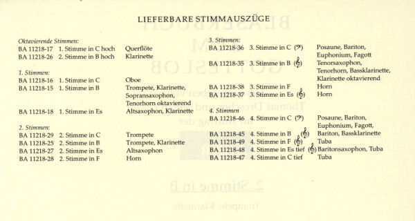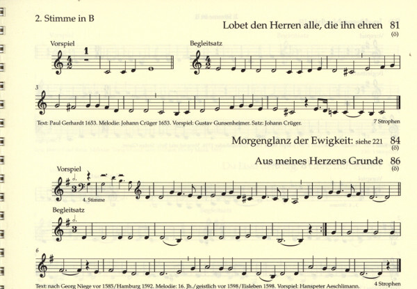 Die Ausgabe enthält 175 Vorspiele plus zugehörige Sätze zur Gemeindebe- gleitung. Neben einer Partitur jeweils in C- und in B-Stimmung bietet sie eine außergewöhnliche Vielfalt an Einzelstimmen. Angeboten werden sämtliche einschlägigen Blechblasinstrumente sowie verschiedene Stimmungen für Klarinette und Saxophon. Den verschiedenen Besetzungen von Bläserensembles wird dadurch in besonderer Weise Rechnung getragen.