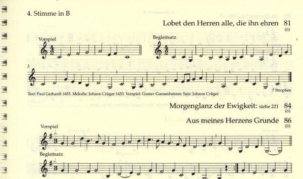 Die Ausgabe enthält 175 Vorspiele plus zugehörige Sätze zur Gemeindebe- gleitung. Neben einer Partitur jeweils in C- und in B-Stimmung bietet sie eine außergewöhnliche Vielfalt an Einzelstimmen. Angeboten werden sämtliche einschlägigen Blechblasinstrumente sowie verschiedene Stimmungen für Klarinette und Saxophon. Den verschiedenen Besetzungen von Bläserensembles wird dadurch in besonderer Weise Rechnung getragen.