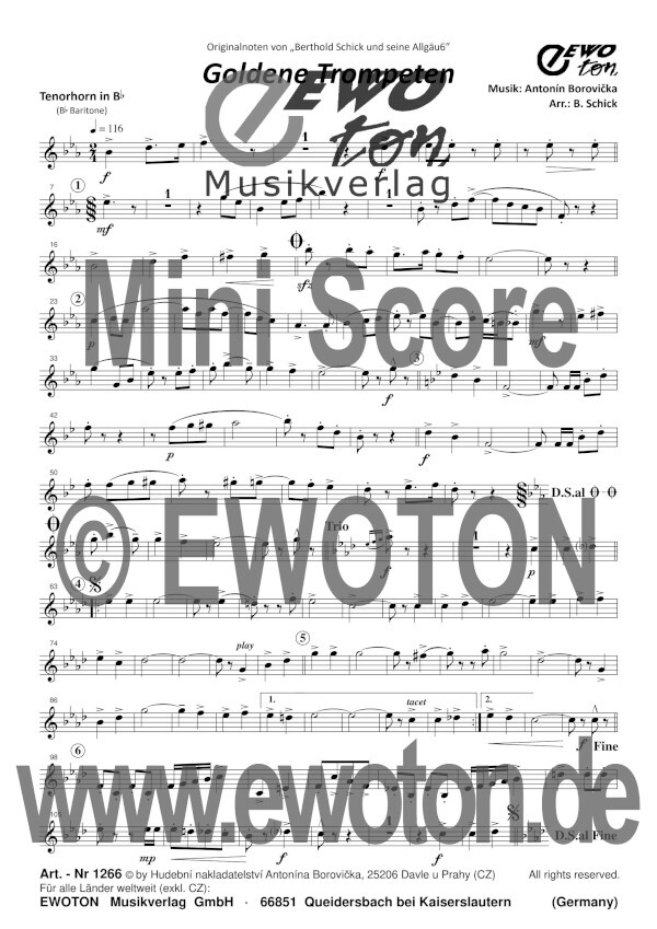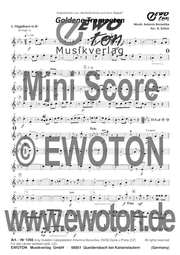 Goldene Trompeten (oder Az bodou Trumpety) ist einer der bekanntesten Polkas aus der Feder Antonín Borovickas und sehr beliebt durch Ernst Mosch und seine Original Egerländer Musikanten!