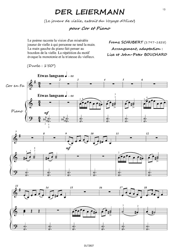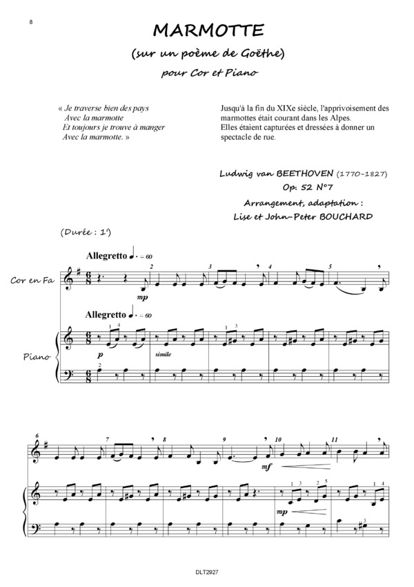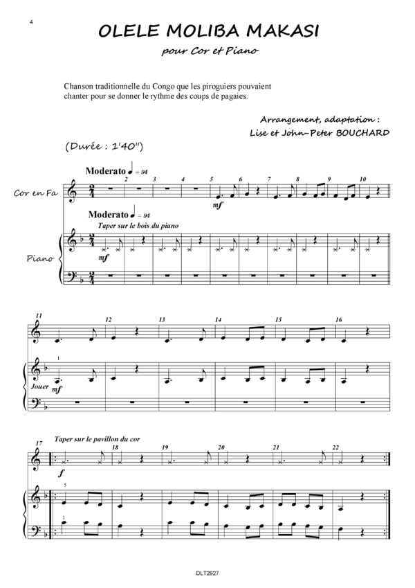 Nous avons imaginé ce recueil dans la perspective de donner envie aux élèves cornistes et pianistes de jouer ensemble, dès le début de leur apprentissage musical.
