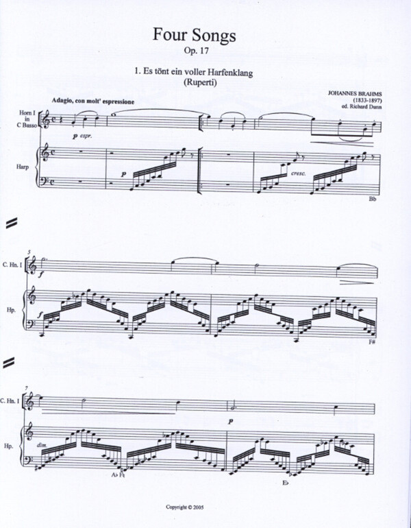 4 Lieder op.17 - Stimmen: Horn 1 in C basso, Horn 2 in Es, Harfe