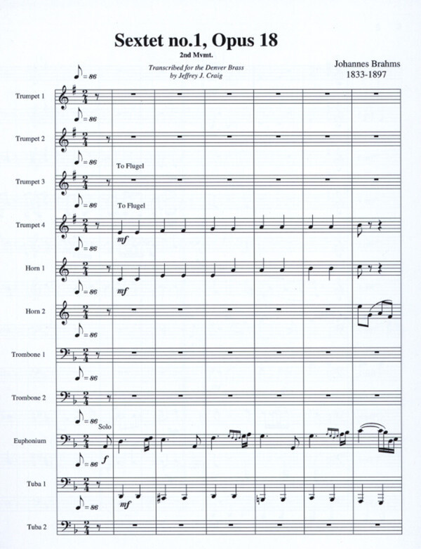 für 4 Trompeten, 2 Hörner, 2 Posaunen, Euphonium, 2 Tuben + Percussion