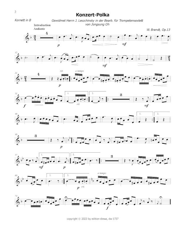 für Kornett/Trompete in B, Flügelhorn in B und 4 Trompeten in B