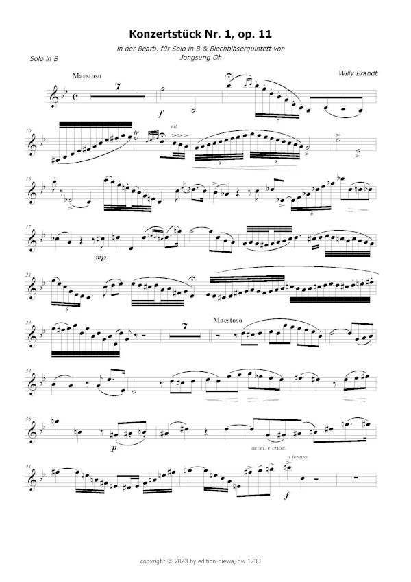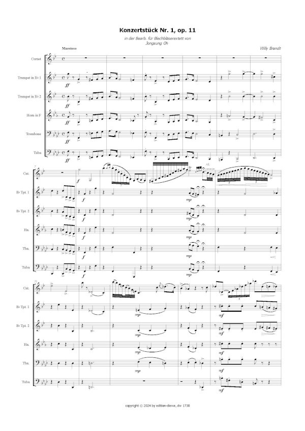 für Kornett/Trompete in B, 2 Trompeten in B. Horn in F, Posaune und Tuba sehr gelungene Bearbeitung