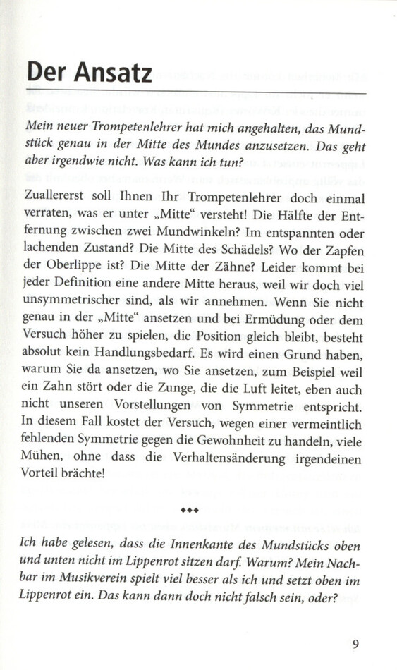"Malte Burba weiß alles", gesteht Till Brönner. Profitieren auch Sie von seinen Antworten auf 100 Fragen: Wie atme ich richtig? Was kann ich tun, damit meine Höhe besser wird? Warum ist weniger üben manchmal mehr? Ob Trompeter, Posaunist oder Tubist - mit diesem Ratgeber meistern alle Blechbläser die Hohen und Tiefen des Bläserlebens. Gut verständlich kommentiert und hinterfragt Malte Burba in unterhaltsamer und doch ernst gemeinter Weise alle wichtigen Aspekte der täglichen Musizierpraxis. Von Ansatzproblemen bis Zungentechnik - Professor Burba lässt keine Fragen offen!