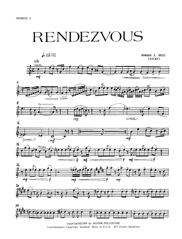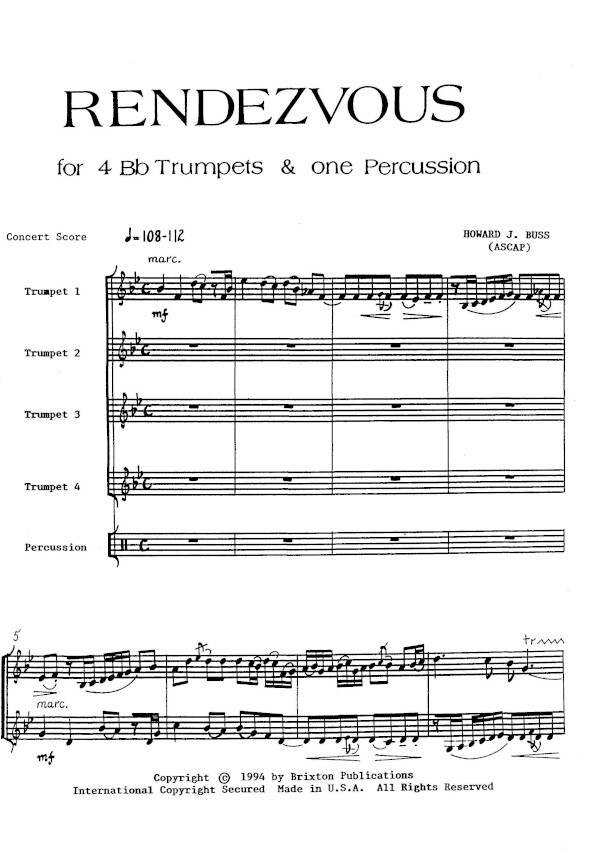 (1994, beginnt mit einer Fuge begleitet vom Xylophon, rhythmisch und harmonisch ist das Stück von Jazzele menten beeinflußt, 8 Min.) 4 Tr in B + Perc (1 Spieler)