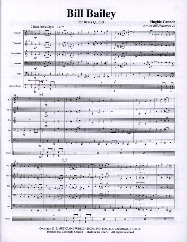 Inhalt: Stimmenpartitur Einzelstimmen für 1. Trompete 1 2. Trompete 2 3. Horn in F 4. Posaune 5. Tuba