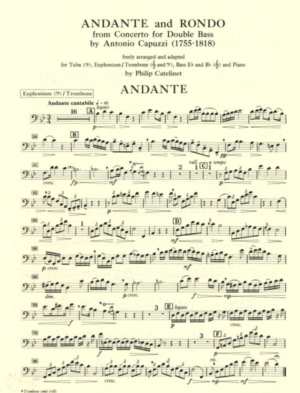 Stimme im Baßschlüssel in C und Violinschlüssel in B enthalten.