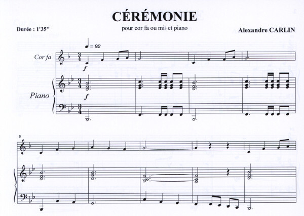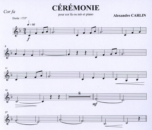 Tonumfang (in F): c' - a' rhythmisch sehr einfach Klavierbegleitung ist gleich einfach wie Hornstimme 1:35 Min.