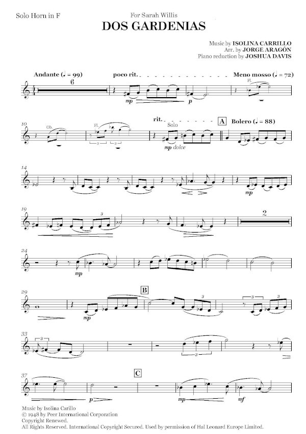 Dos Gardenias - for Horn, Trumpet & Orchestra | Notendownload