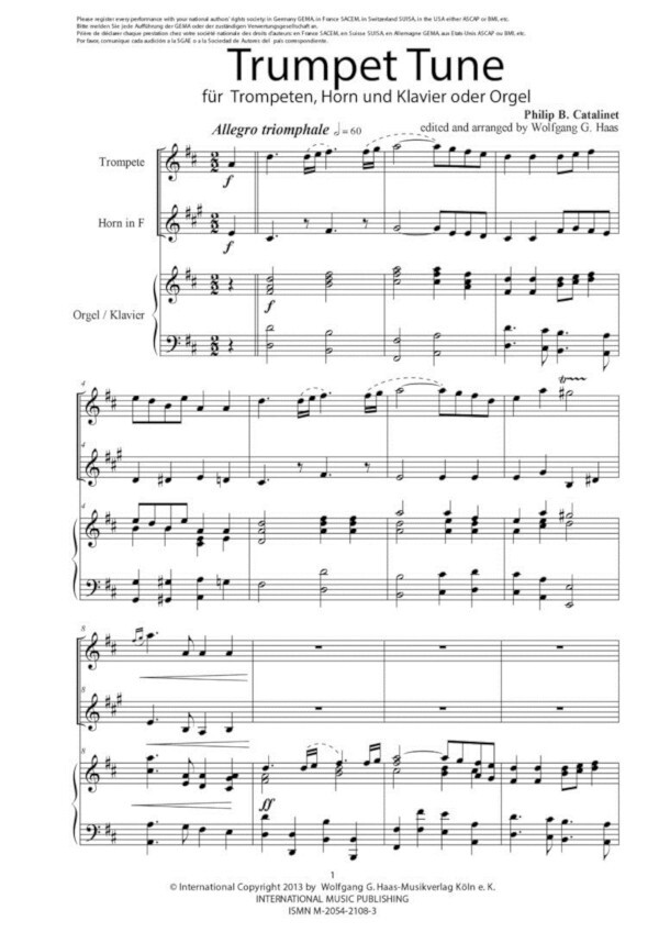 Stimmen für Trompete in C/A und Horn in F