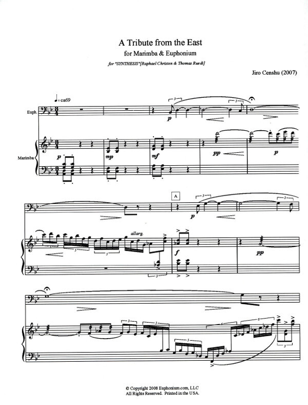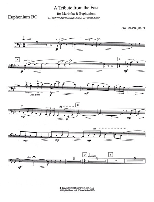 (2008, die Komp osition folgt einer lyrischen Balladenform (A-B-C-B-A) und ist von japanisch en Musikstilelementen beeinflußt) Euphonium und Marimba
