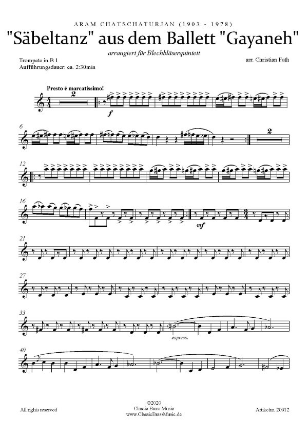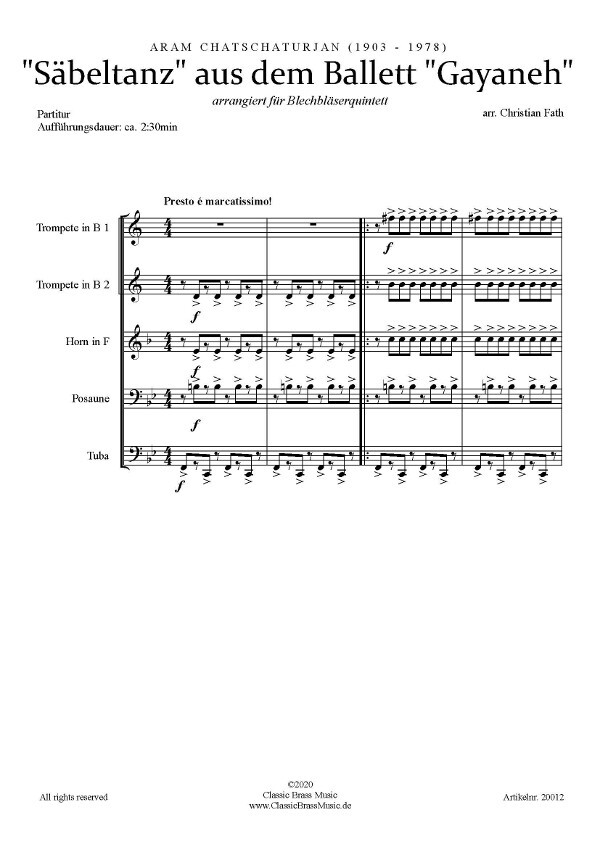 Säbeltanz aus dem ballett "Gayaneh"für Blechbläserquintett