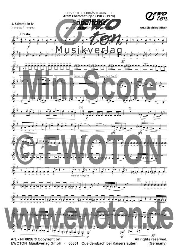 Siegfried Rösch hat diese weltbekannte Komposition für Blechbläserquintett neu arrangiert.