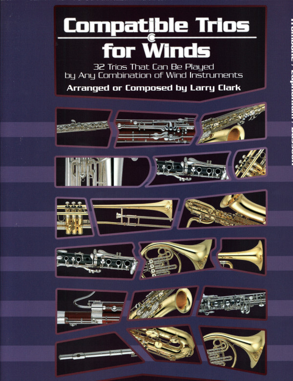 32 Trios That Can Be Played by Any Combination of Wind Instruments This collection contains 32 trios in a variety of styles from classical to folk, and includes some new original works as well. Each piece is playable by any combination of three wind instruments. Trios are a great way to learn how to play in a chamber music setting, and this unique collection gives players the opportunity to do it with anyone else that plays a wind instrument, making for an almost limitless combination of instruments. Compatible Trios for Winds is especially useful in a school setting where students are eager to play music with friends. The flexibility of these trios makes them a must-have for any wind player. Includes tunes such as The Irish Washerwoman, Brahms' Hungarian Dance No. 5, Larry Clark's original Harvest Moon, and more.