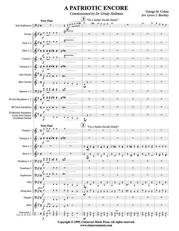 Euph onium im Baßschlüssel + Blasorchester (Piccolo-Flöte, 2 Flöten, 2 Oboen, 3 K larinetten, Alt-Klarinette, Bass-Klarinette, 2 Fagotte, 2 Alt-Saxophone, Tenor-Saxophon, Bariton-Saxophon/Contra-Alt-Klarinette/Kontrabass-Klarinette, 3 Trompeten, 4 Hörner, 3 Posaunen, Euphonium, Tuba, Kontrabass, Pauken, Glocken + Percussion)