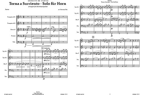 Das bekannte italischische Lied aus der Feder des Komponisten Ernesto de Curtis, wurde im vorliegenden Arrangement als Hornsolo innerhalb der klassischen Blechbläserquintett Besetzung konzipiert. Hierbei kann der hohe Hornist durch weiche Bindungen und markante Kadenzen sein Instrument im besten Licht präsentieren.